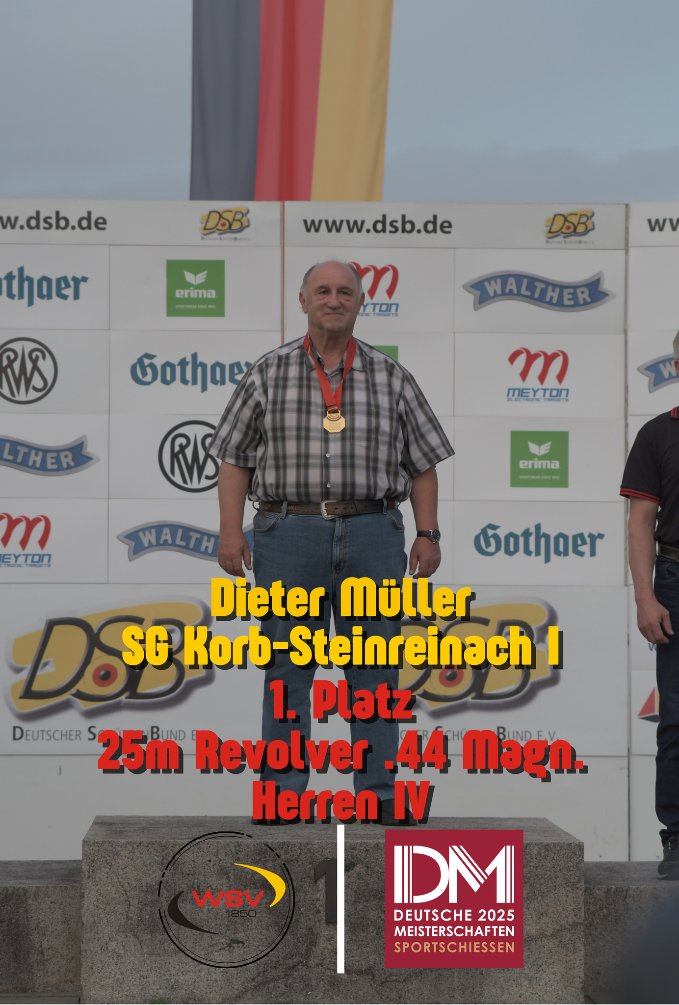Am Tag zuvor konnte Dieter Müller in der Disziplin Revolver 44 Magnum mit einem Ergebnis von sehr guten 382 Ringen eindrucksvoll die Goldmedaille sichern.